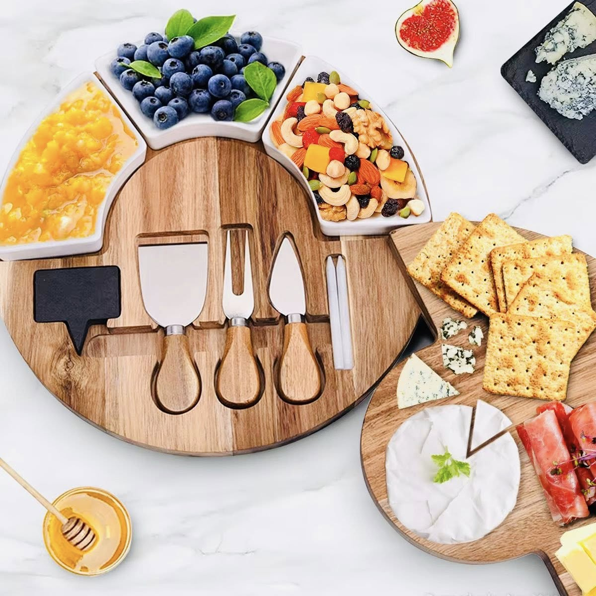 ✔ Include cuțite dedicate pentru diferite tipuri de brânzeturi